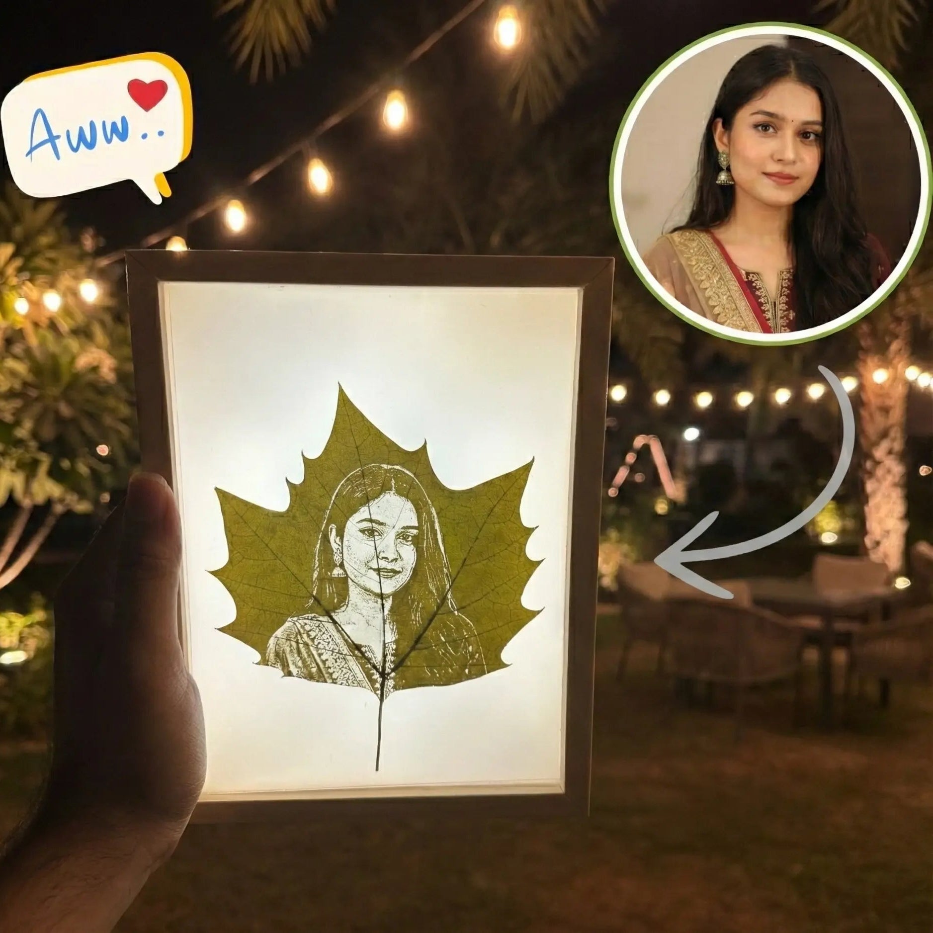 Custom Photo Leaf Engraving in Wooden Frame (Family Deal)